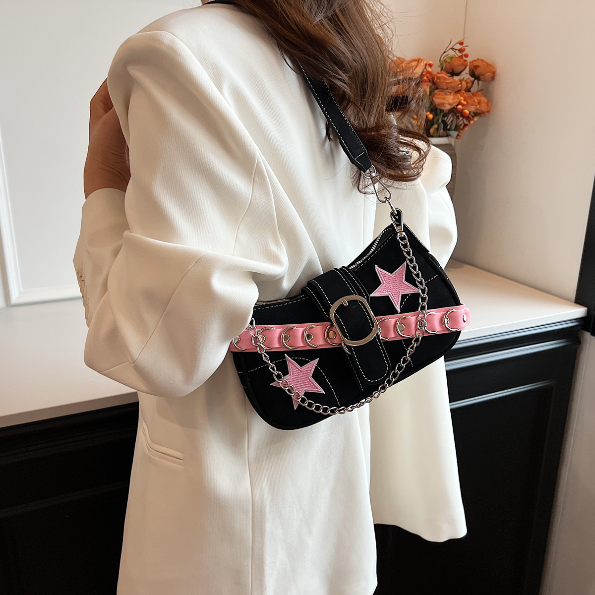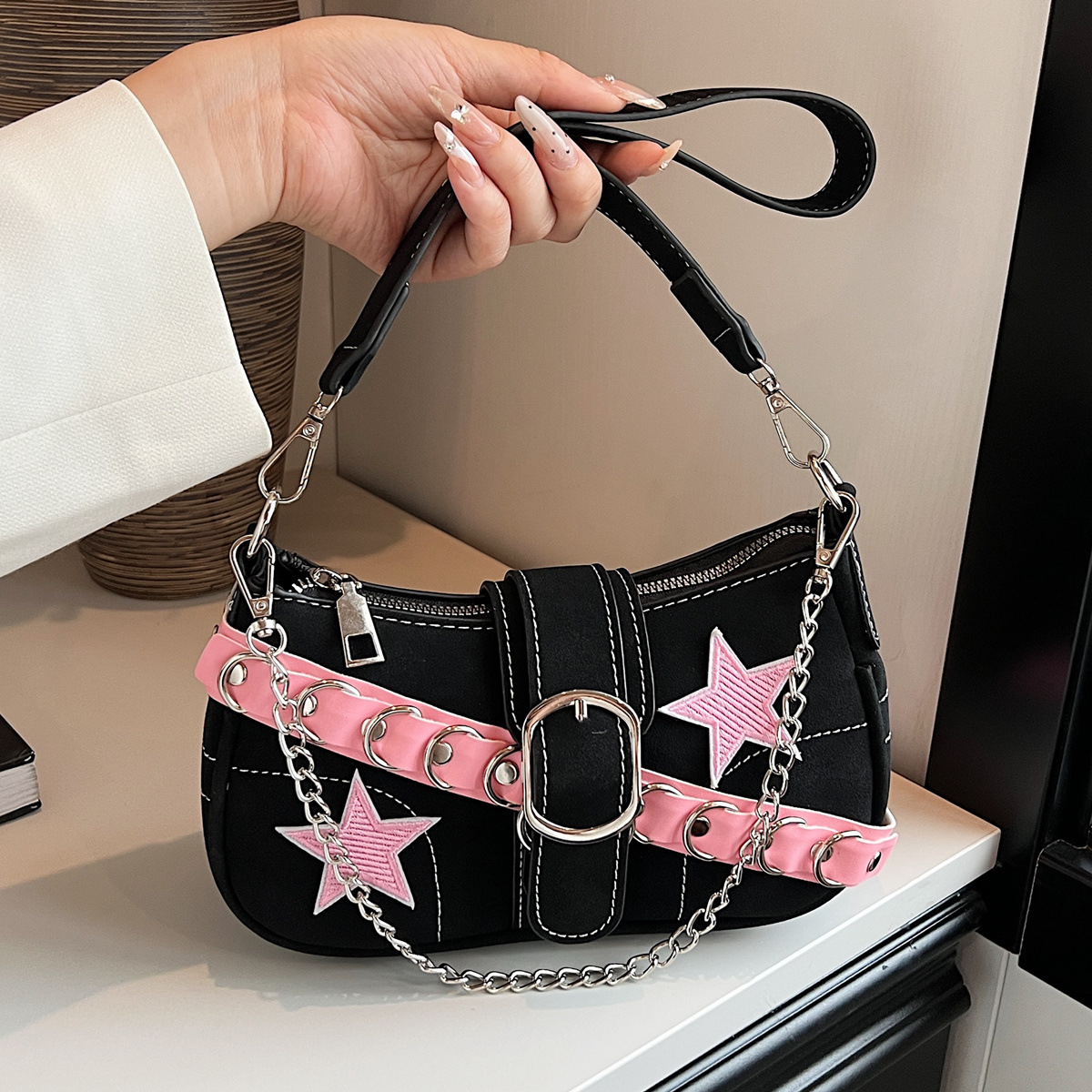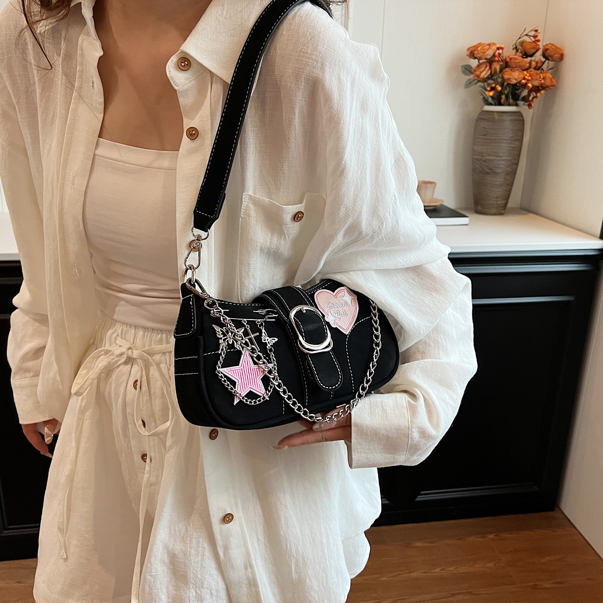 | nameOriginal | Niche Design Chain Color Contrast Shoulder Underarm Small Bag Women's 2024 Summer New Sweet Cool Spice Girl Style Crossbody Bag |