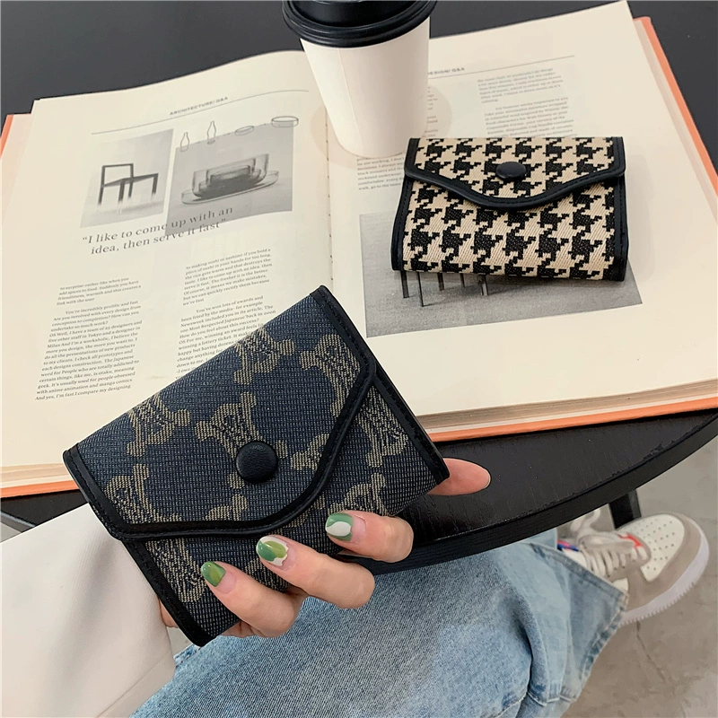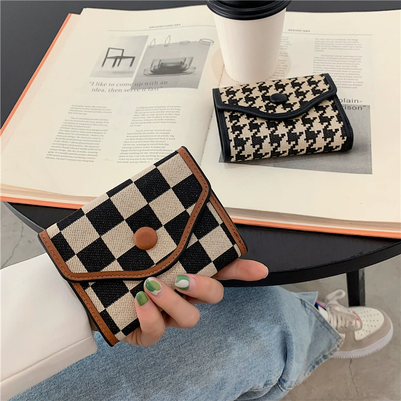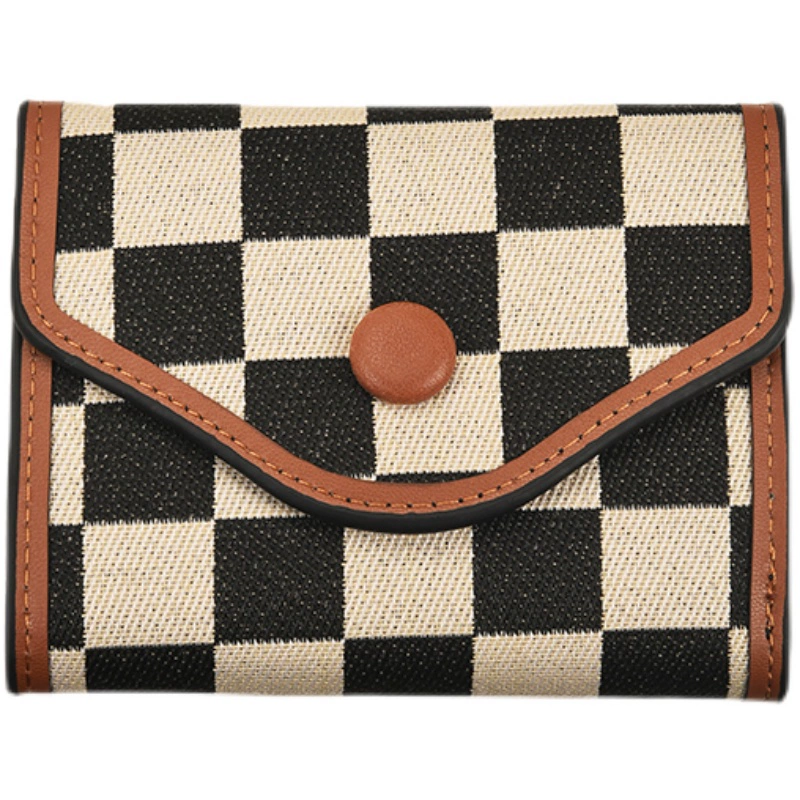 | nameOriginal | Niche design checkerboard wallet women's short Korean version retro canvas plaid multi-card slot personalized buckle coin clip |