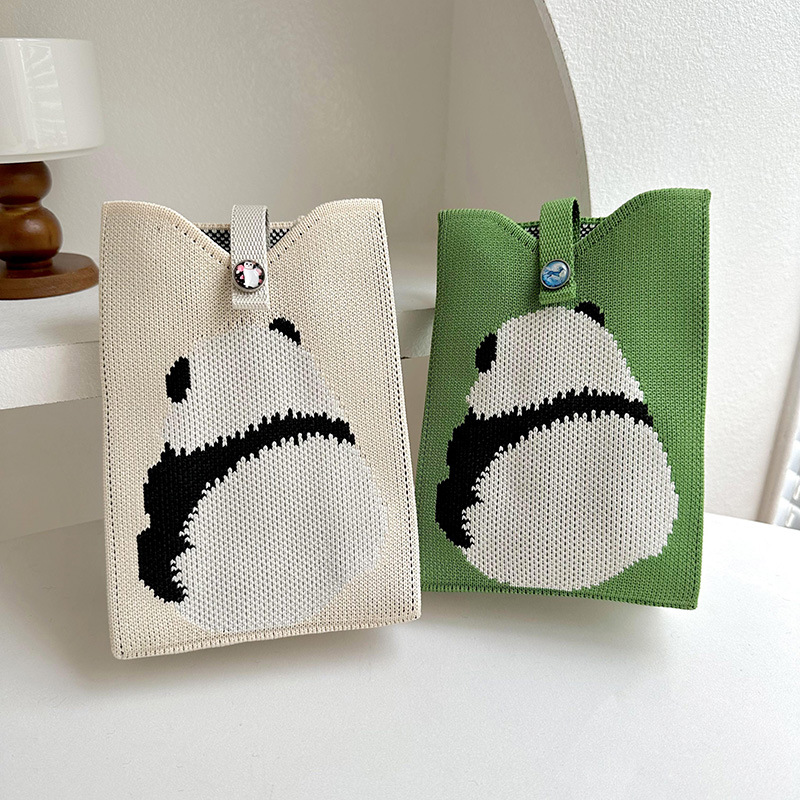 | nameOriginal | Niche design cute panda Mini knitted mobile phone bag women's all-match portable knitted shoulder messenger bag small square bag |