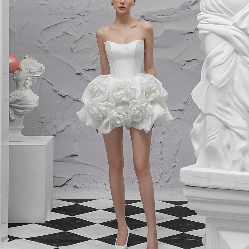 | nameOriginal | Niche design dress 2024 spring new sexy tube top three-dimensional flower elegant white evening banquet dress |