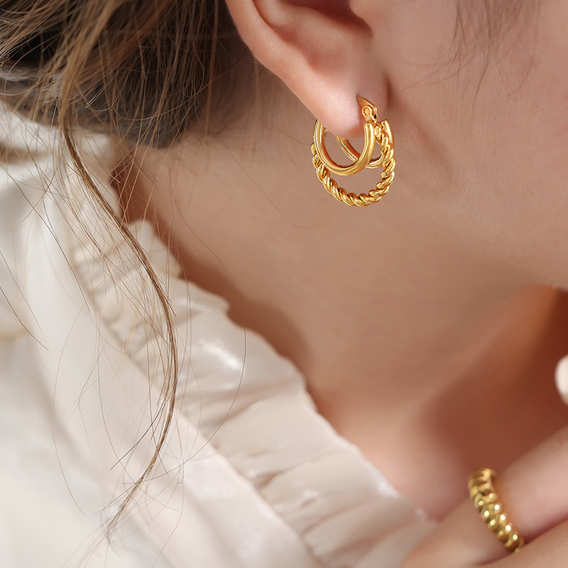 | nameOriginal | Niche design geometric twist ring U-shaped popular three-layer earrings titanium steel earrings light luxury earrings jewelry for girls |