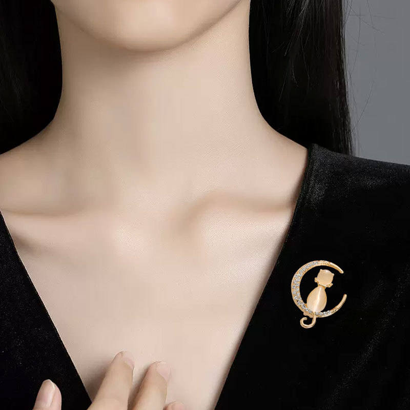 | nameOriginal | Niche design Opal clothing cardigan anti-exposure buckle small suit with Crescent high-grade cute cat brooch |