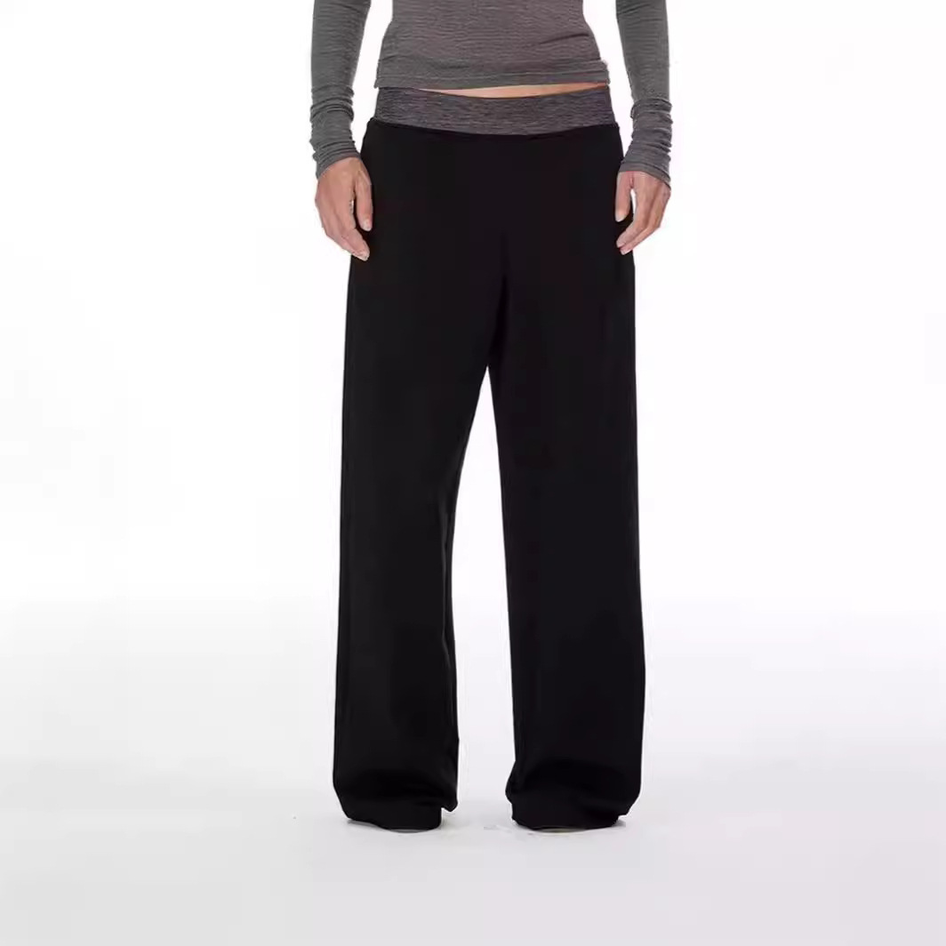 Niche design shake head color contrast casual loose stretch wide leg trousers