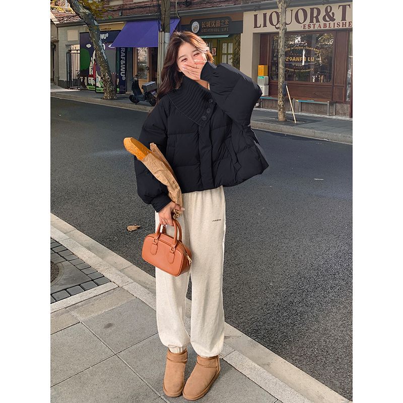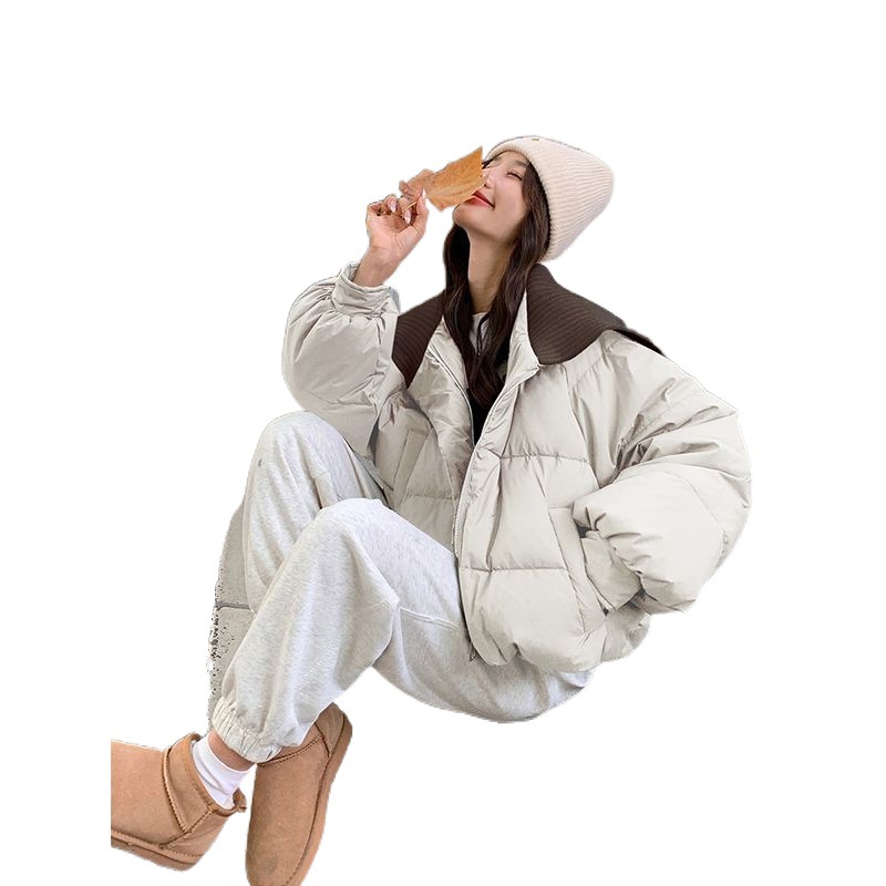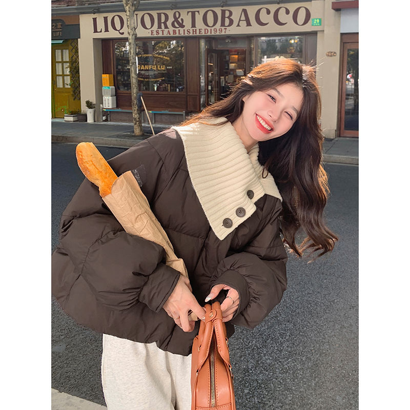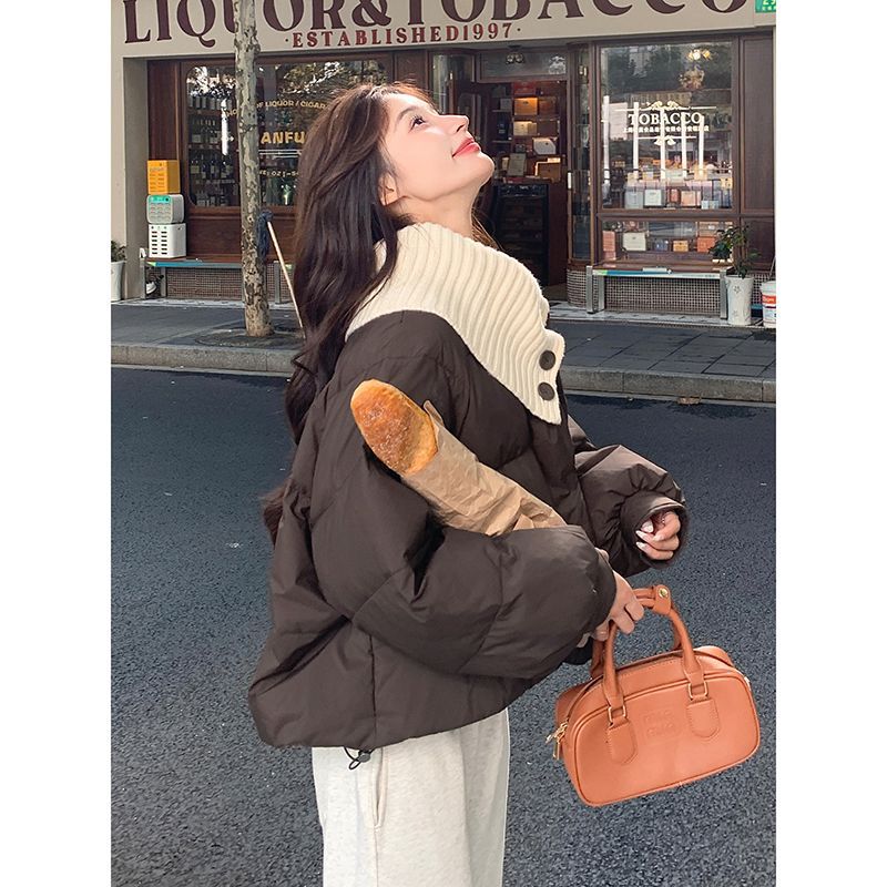 Niche design stitching knitted lapel down cotton-padded coat for women winter new small short cotton-padded coat for women