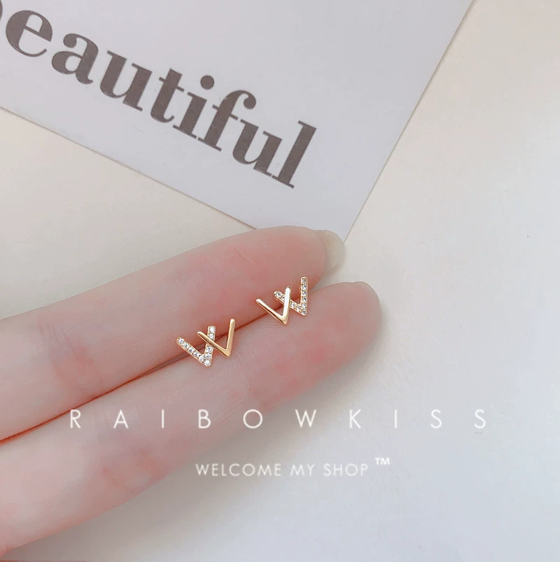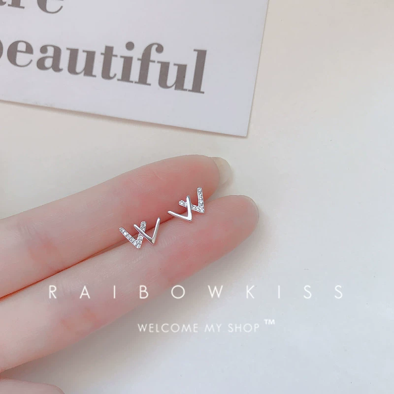 | nameOriginal | Niche design w letter stud earrings for women S925 sterling silver 2024 new internet celebrity fashion double v small temperament earrings |