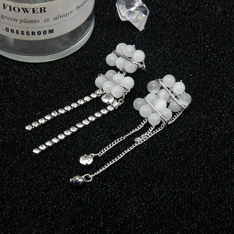 Niche design white jade beaded asymmetric flash diamond tassel earrings for women 2021 new trendy temperament high-end earrings