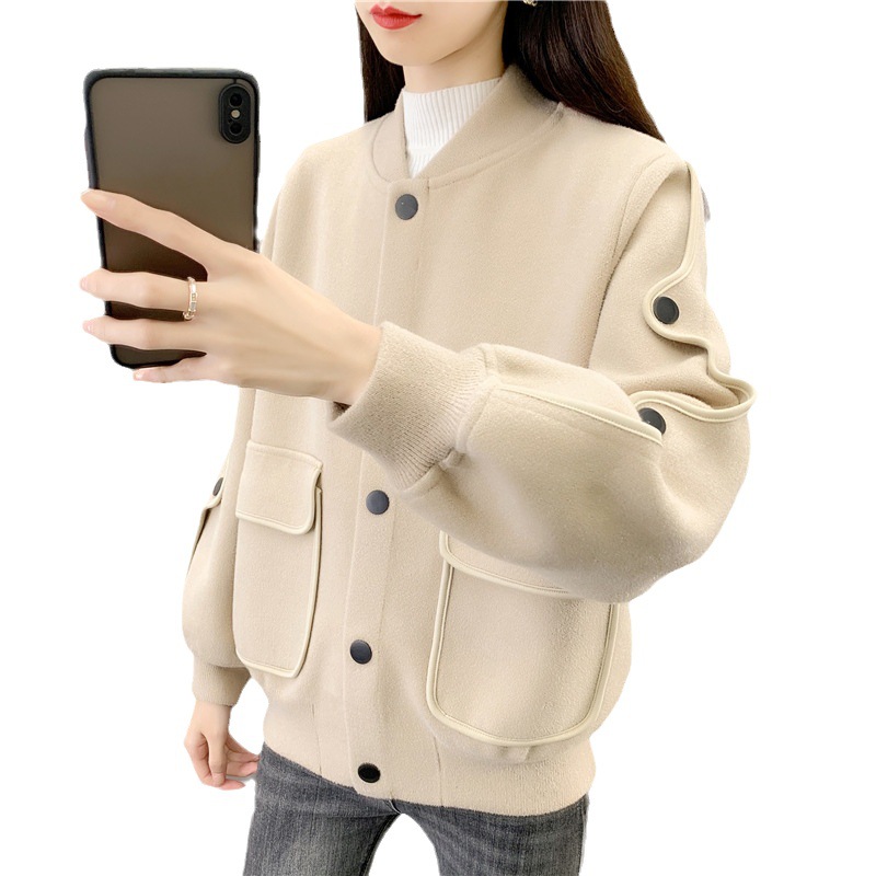 | nameOriginal | Niche design woolen knitted cardigan top for women autumn and winter 2023 new outer wear round neck loose sweater coat |