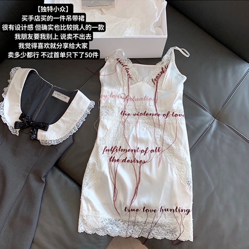 | nameOriginal | Niche Destruction Letter Satin Suspender Skirt Lace |