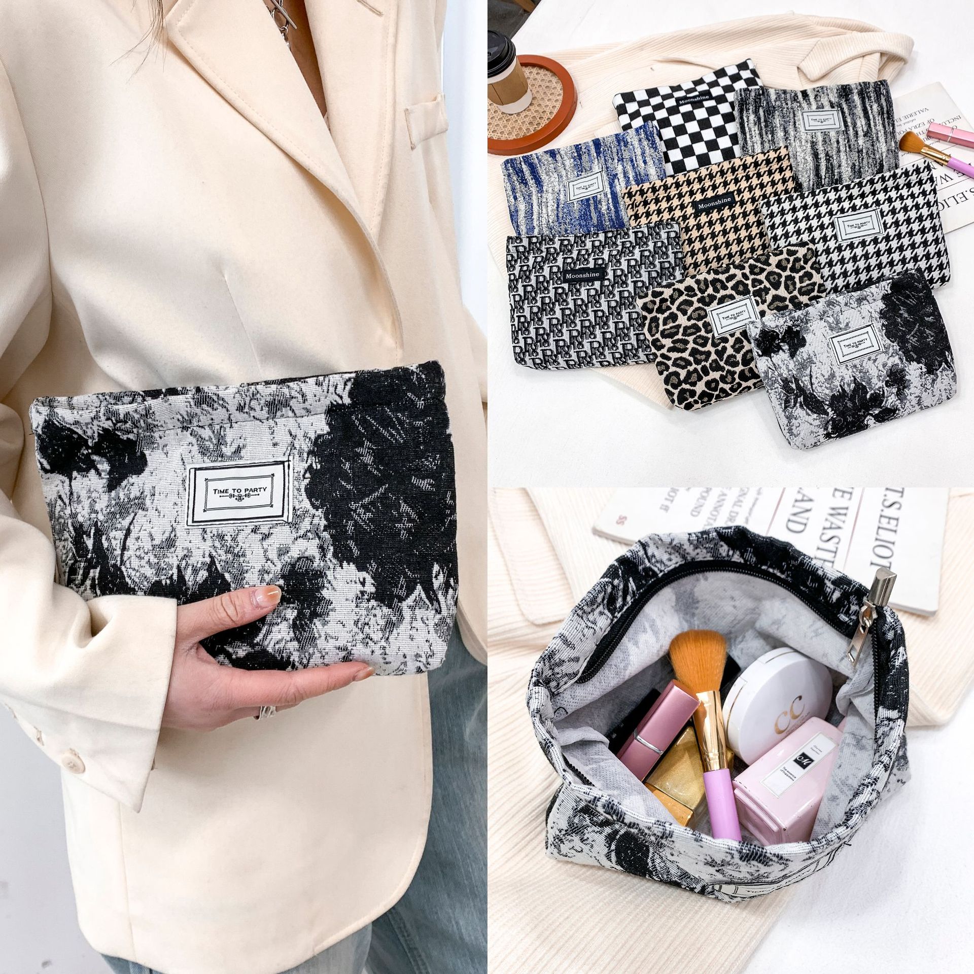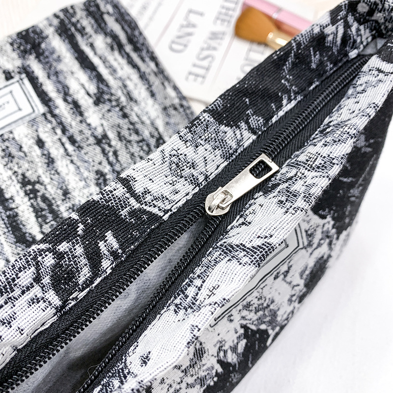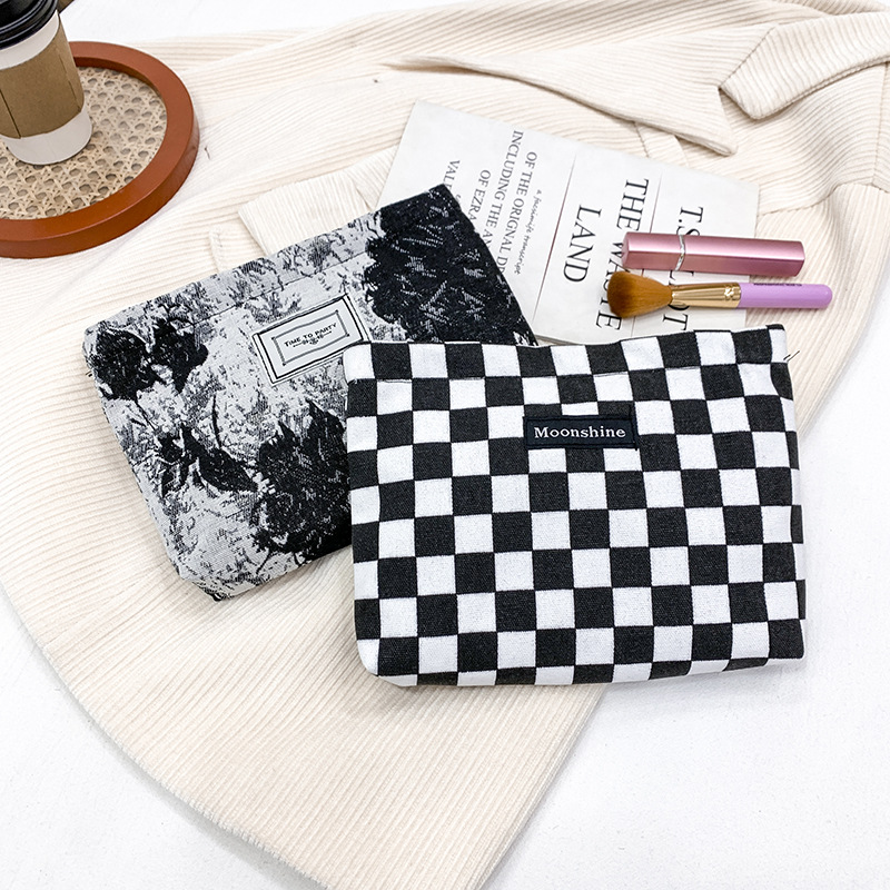 Niche elegant jacquard nylon cosmetic bag artistic retro elegant flower convenient clutch cross-border plaid bag