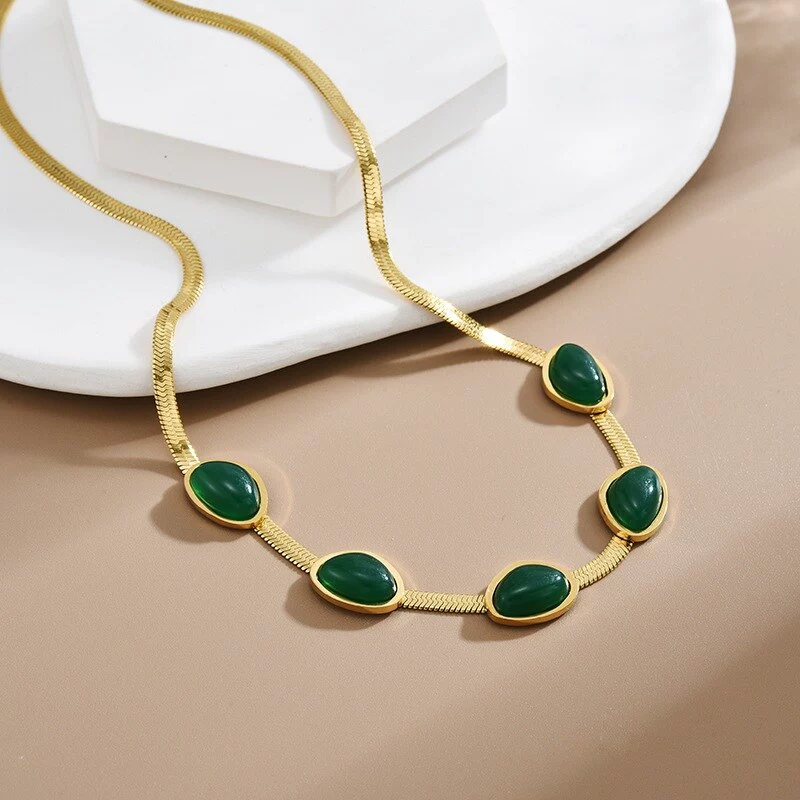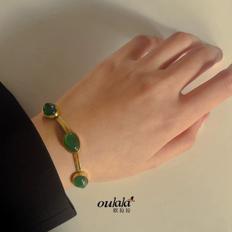 | nameOriginal | Niche European and American emerald women's titanium steel non-fading bracelet |