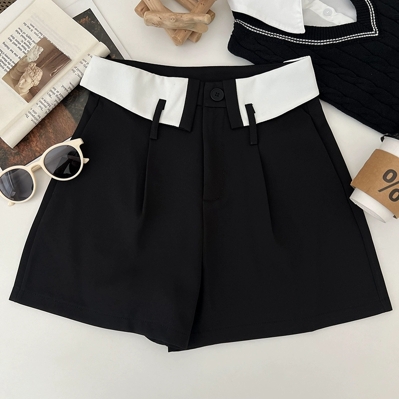 | nameOriginal | Niche Fashion Contrast Color Cuffed High Waist Suit Shorts |
