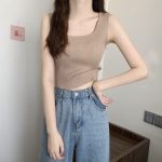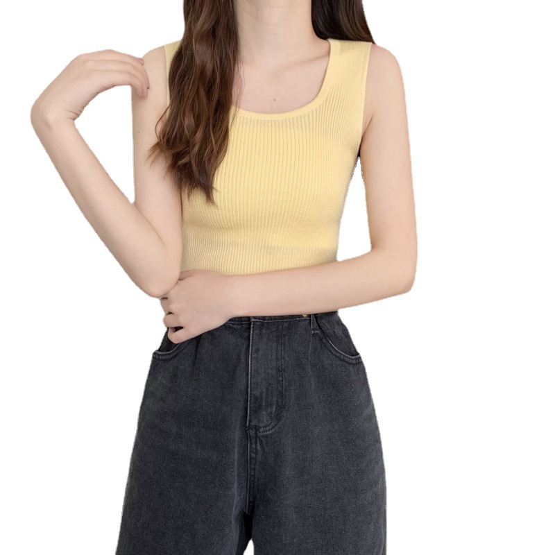 Niche French Retro Design Sense Summer Wear Solid Color Knitted Camisole Vest Slim-fit Navel Short Top for Women
