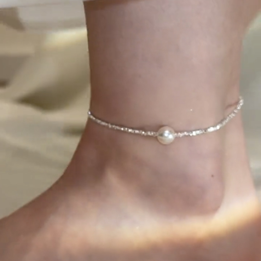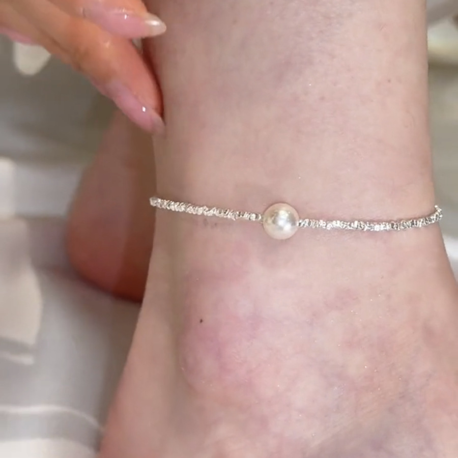 Niche French Romantic Irregular Broken Silver Pearl Foot Chain Light Luxury High-end Sense Exquisite Simple All-match Commuter Foot Chain