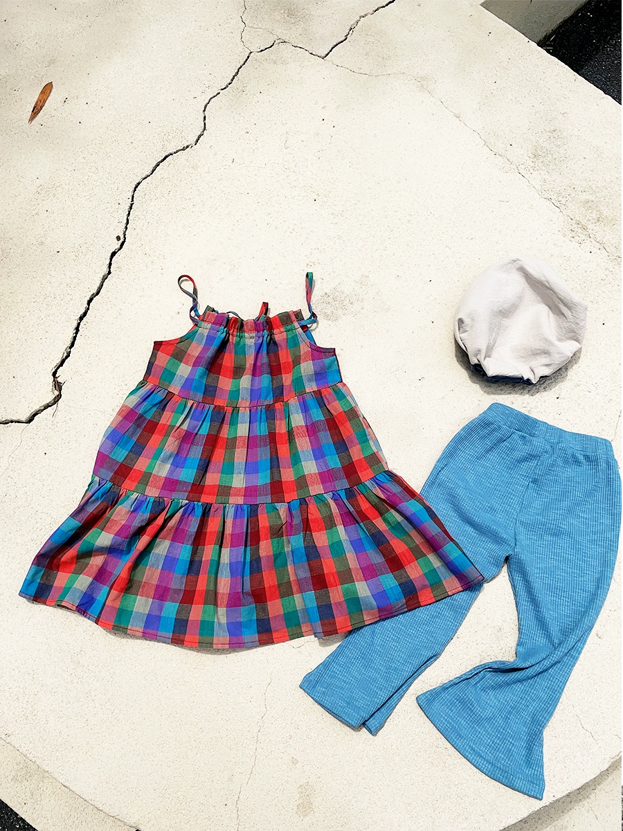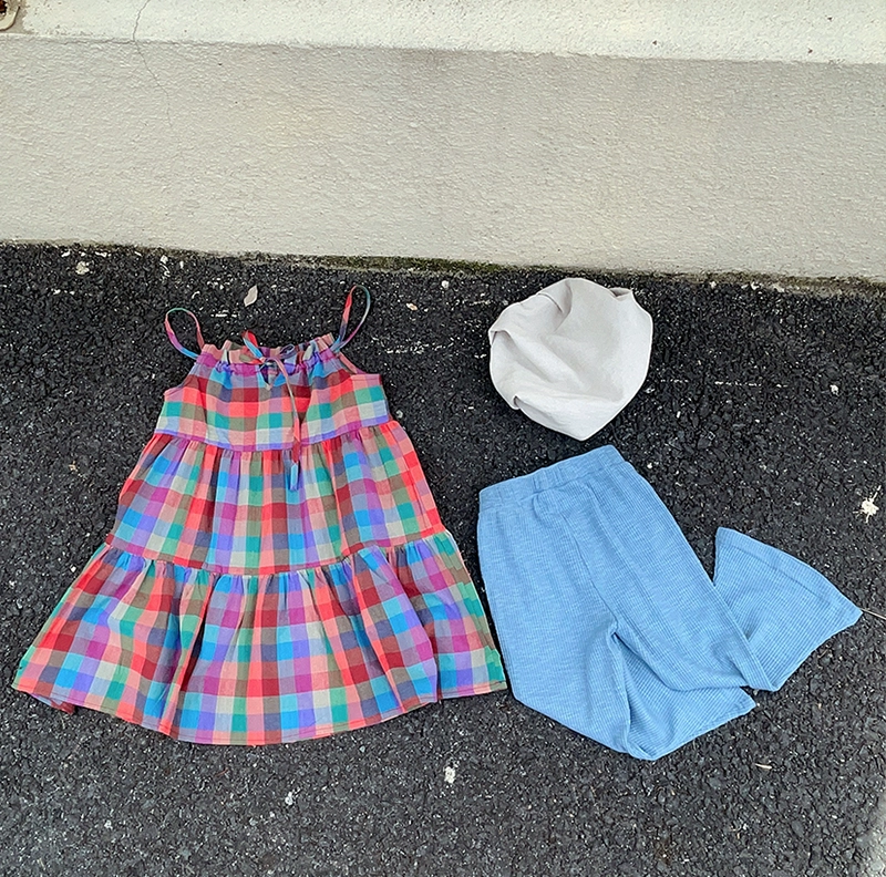 | nameOriginal | Niche French tops for girls, colorful plaid suspender skirts, parent-child outfits, flared jeans, mother-daughter outfits, summer styles |