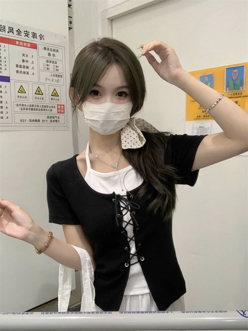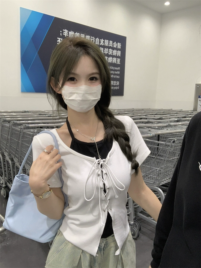 | nameOriginal | Niche halter neck short sleeves 2024 new slim fit fake two pieces |