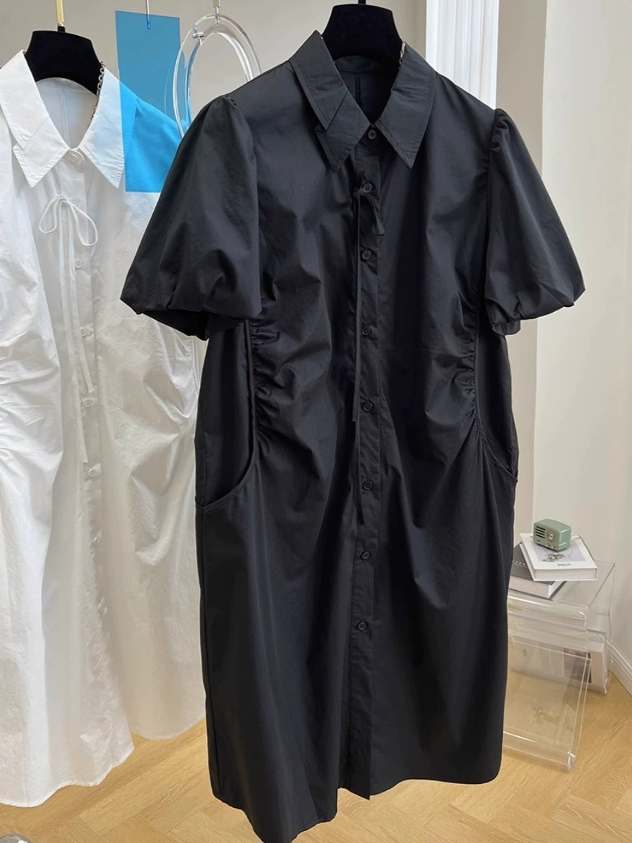 | nameOriginal | Niche high-end chic lantern shirt dress summer short sleeves |