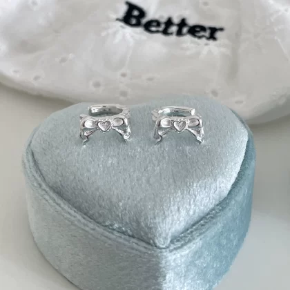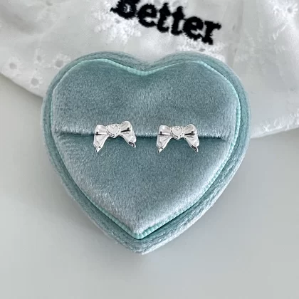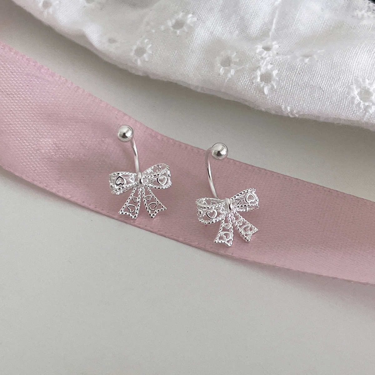 Niche Hollow Love Stud Earrings for Women with Back Hanging Bow