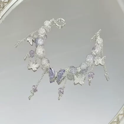 | nameOriginal | Niche ice transparent tassel hand-beaded female purple butterfly |