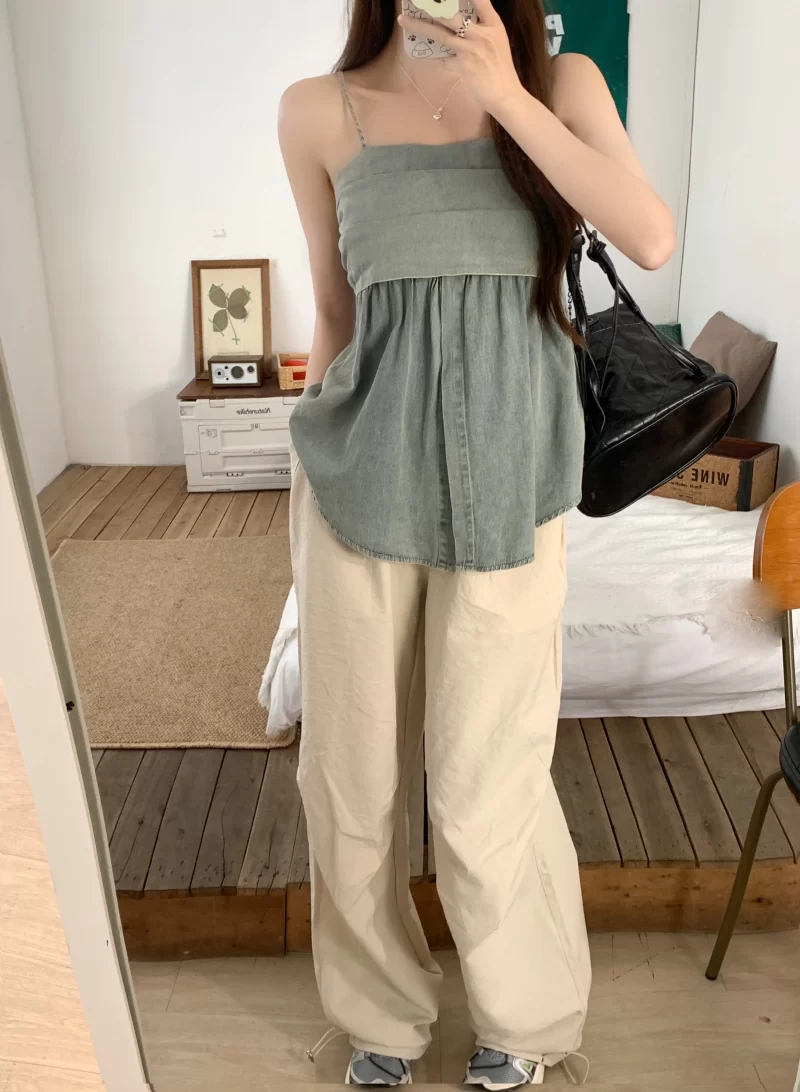 nameOriginal | Niche light blue denim high waist sleeveless camisole |