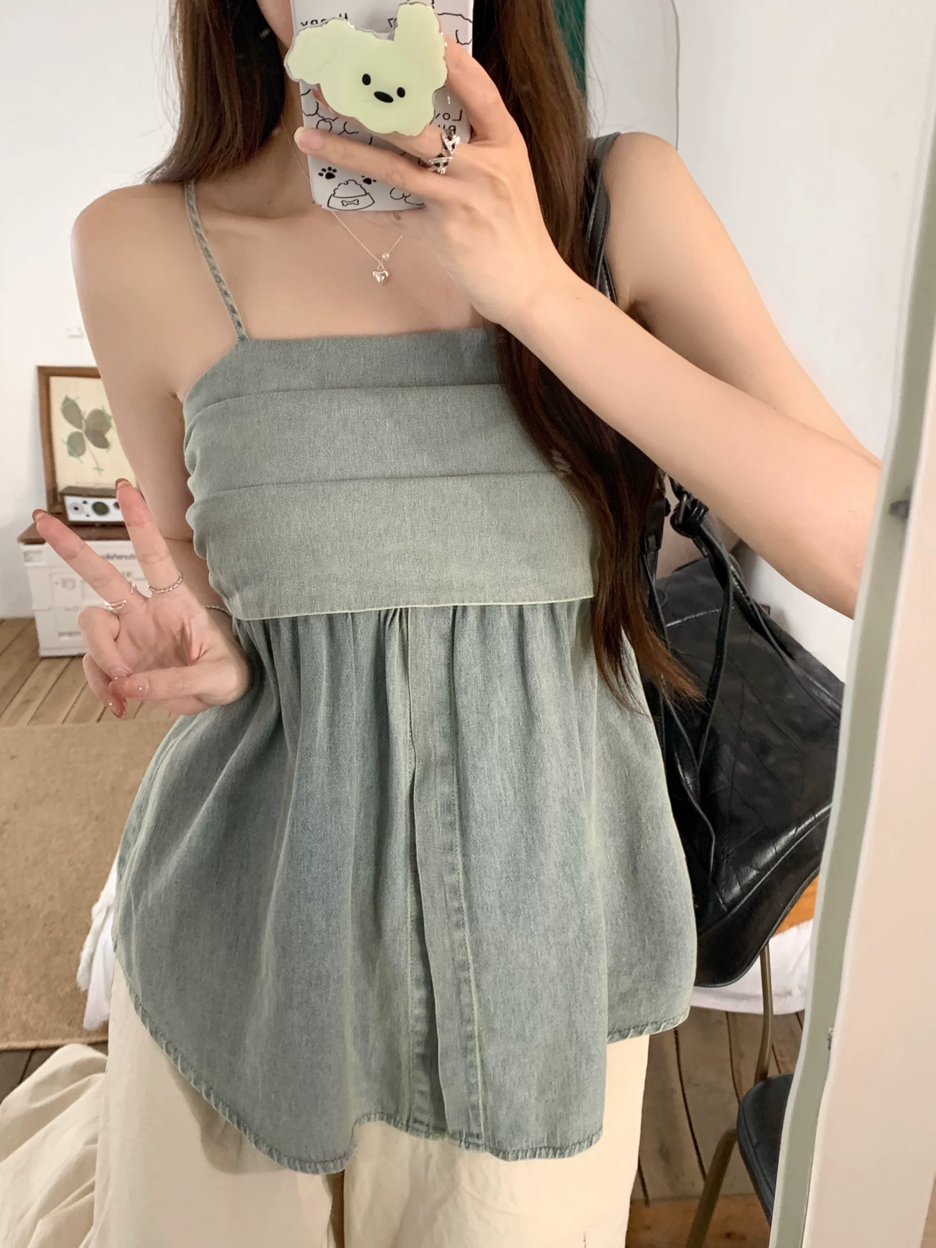 | nameOriginal | Niche light blue denim high waist sleeveless camisole |