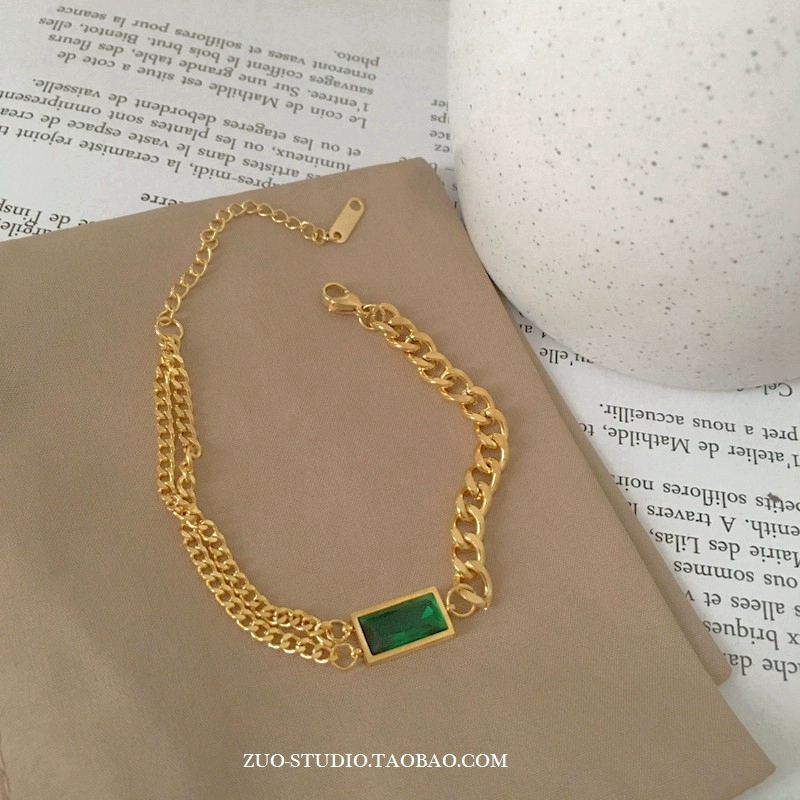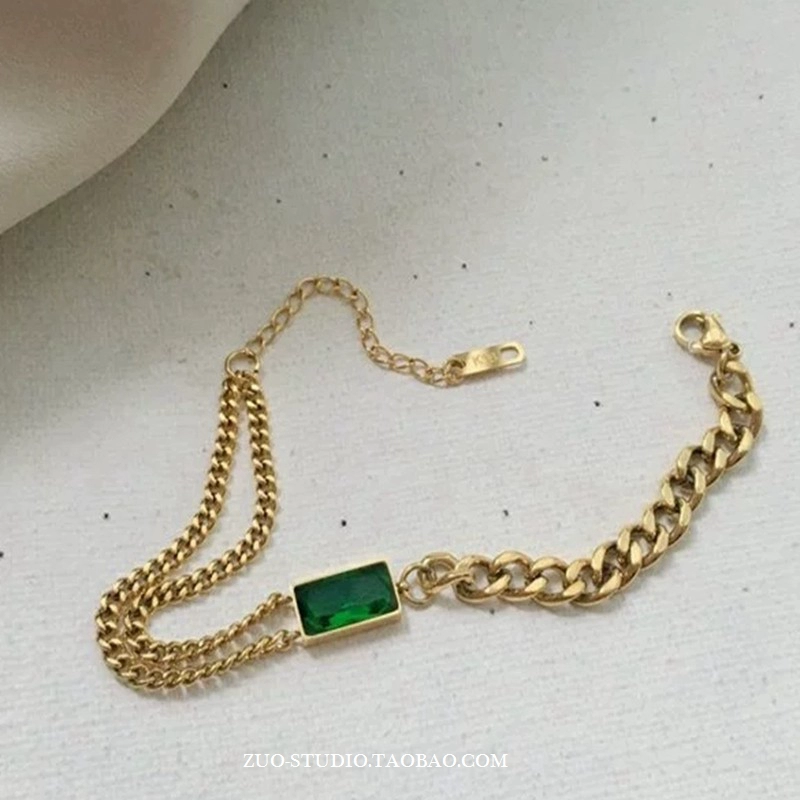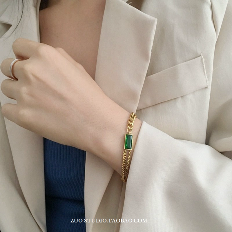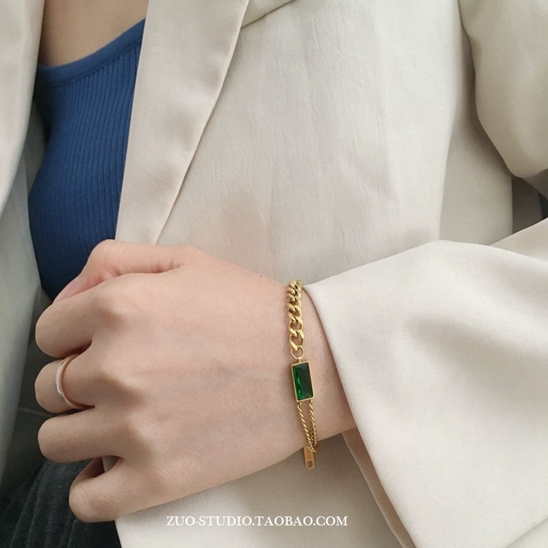 | nameOriginal | Niche light luxury and high-end 18K gold square emerald bracelet for women ins fashion, exquisite, versatile and non-fading hand jewelry |