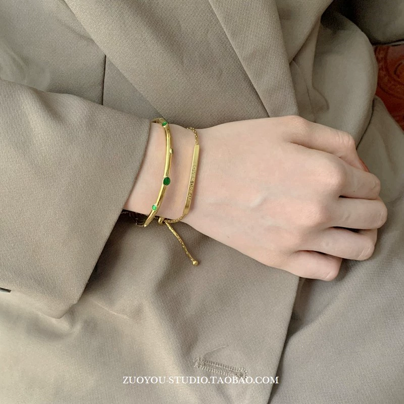 | nameOriginal | Niche luxury 18K gold emerald bracelet for women INS trendy versatile temperament high-end internet celebrity fashion open bracelet |