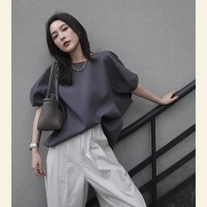 nameOriginal | Niche luxury puff sleeve high-end bat-shaped shirt |