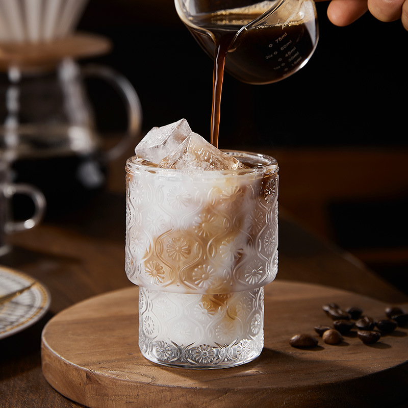 Niche medieval relief crabapple flower can be folded glass vintage ice American coffee cup juice cup bubble Cup
