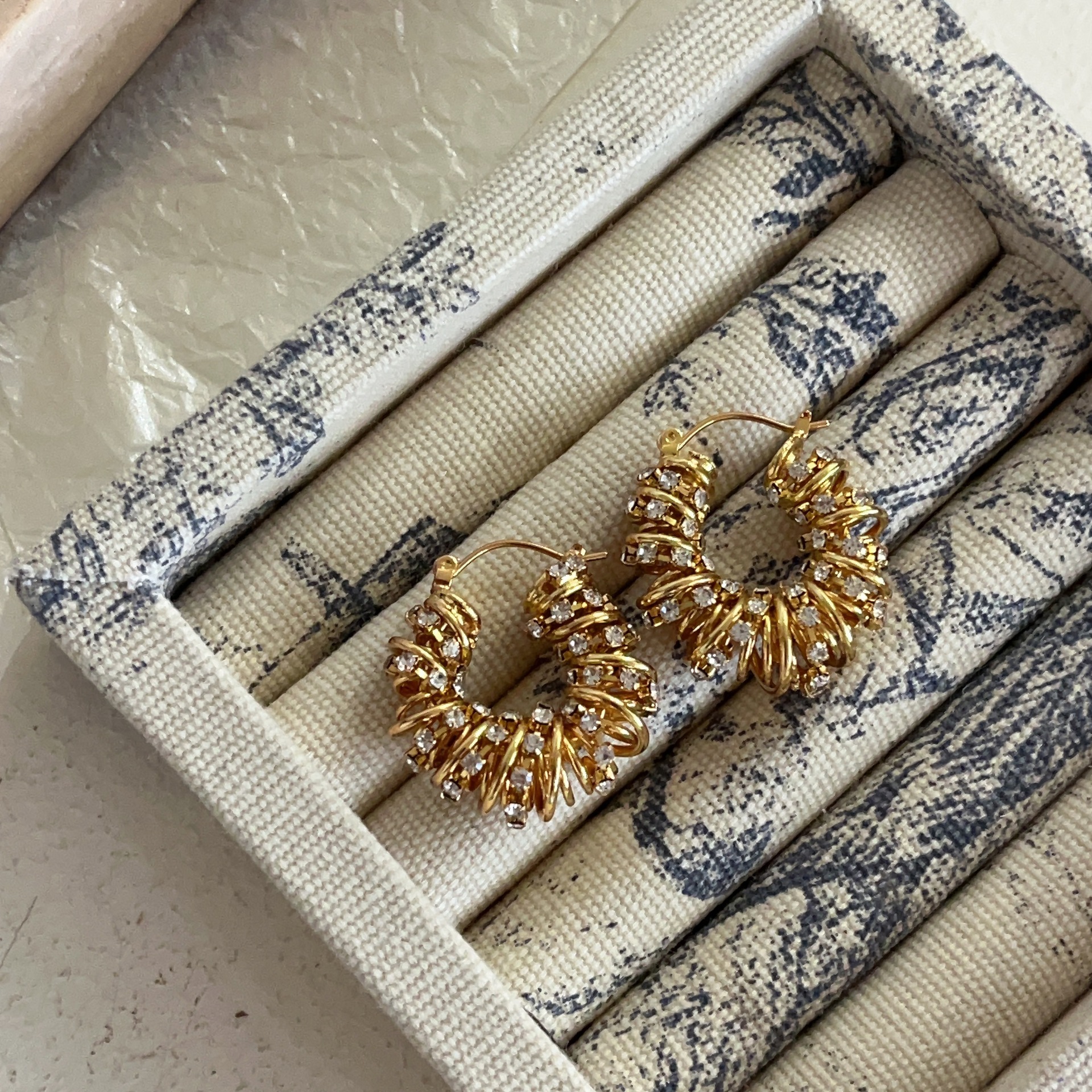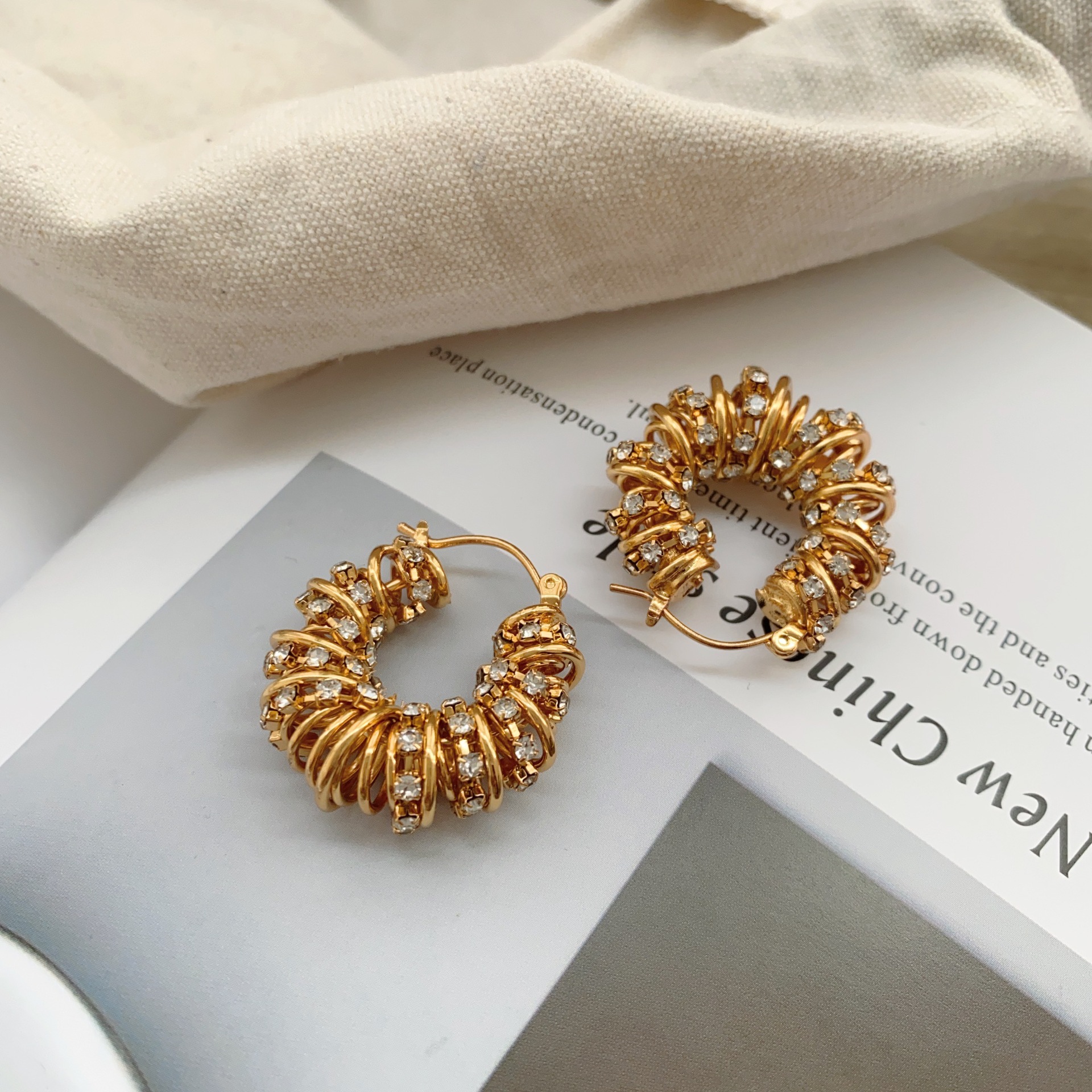 | nameOriginal | Niche Metal Zircon Earrings Hollow Circle 22k Gold Ear Buckle European and American ins Style Fashionable Winding Art New |