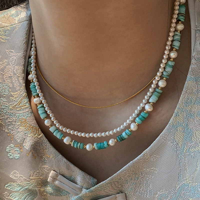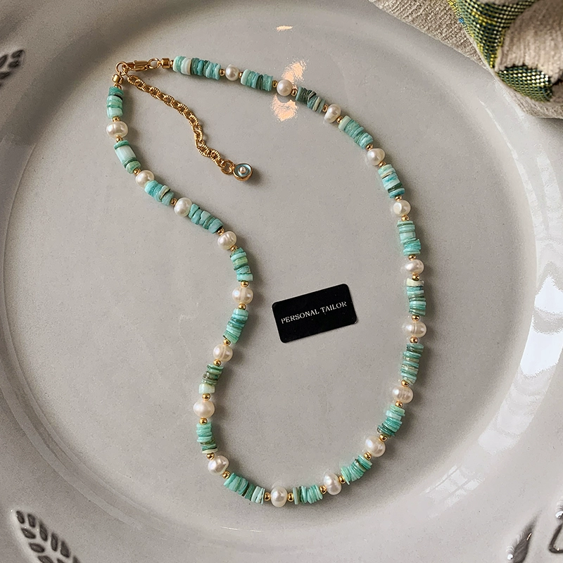 | nameOriginal | Niche mint green natural pearl women's clavicle chain shell |