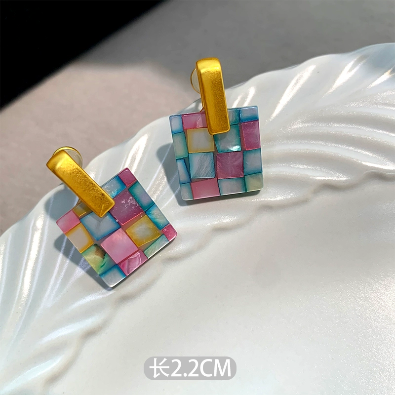 | nameOriginal | Niche natural women's geometric plaid earrings and shells |