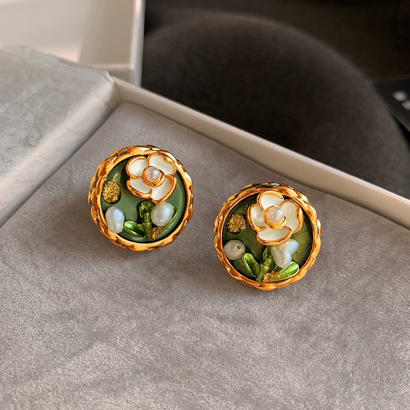 | nameOriginal | Niche oil painting antique style pearl women's earrings flowers |