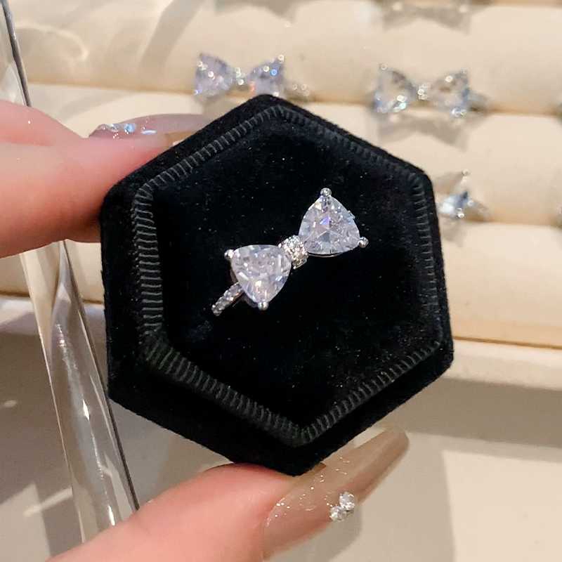 | nameOriginal | Niche pink diamond bow women's zircon plain silver ring |