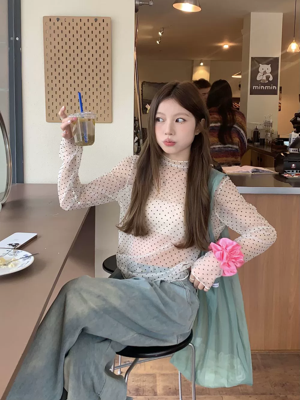 | nameOriginal | Niche polka dot round neck long sleeve T-shirt top bottoming shirt |