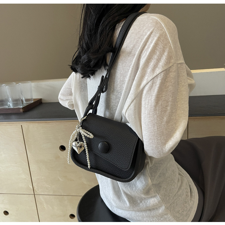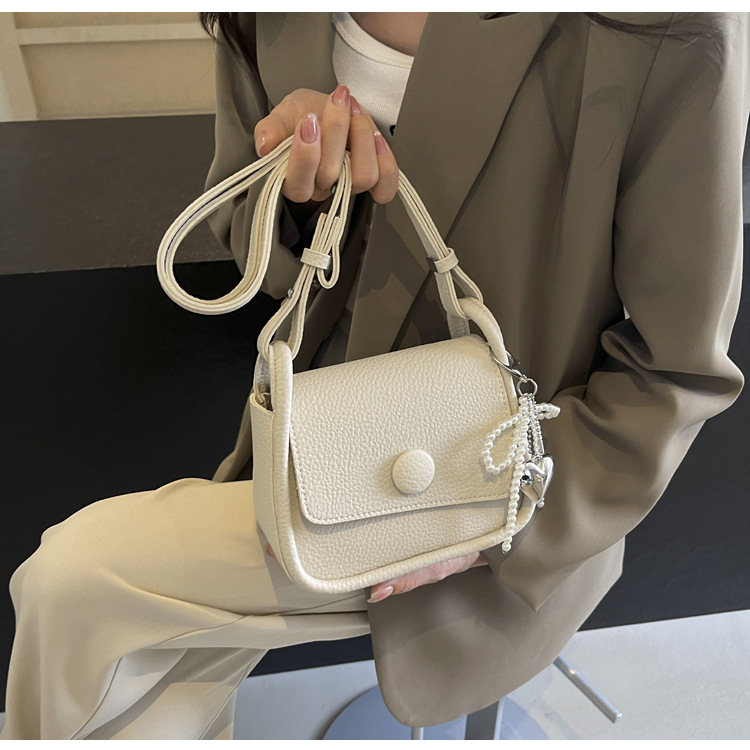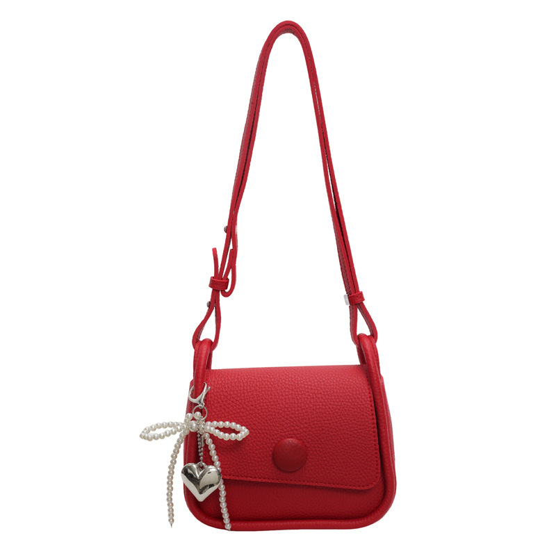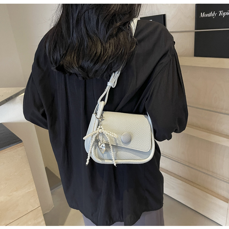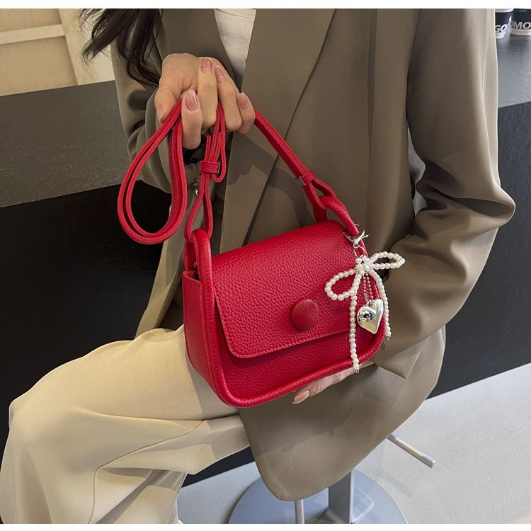 Niche Popular Beaded Bow Saddle Bag Women’s 2024 New Simple Cute Shoulder Bag Crossbody Small Square Bag