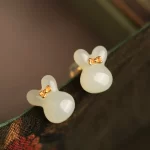 Niche rabbit female national style earrings natural Hetian jade
