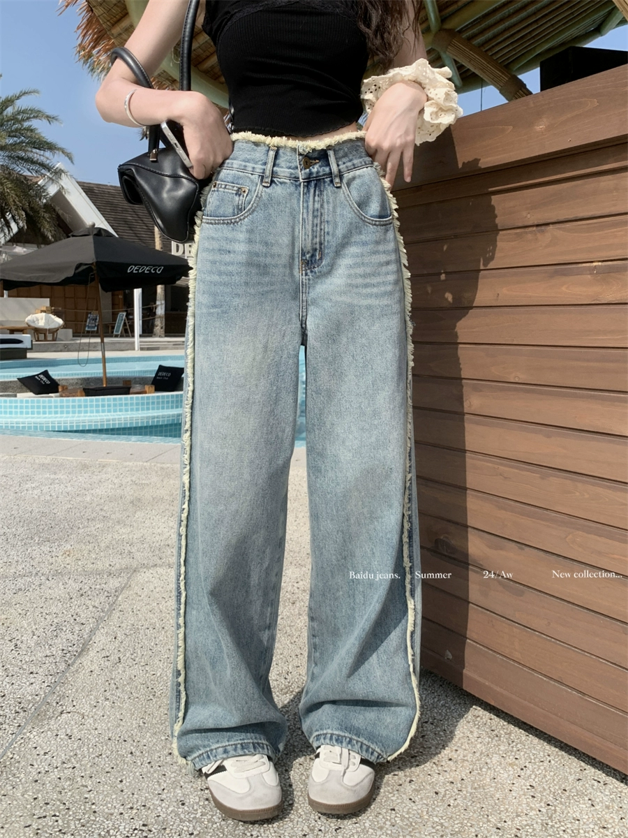 | nameOriginal | Niche raw edge slimming high waist retro straight jeans |