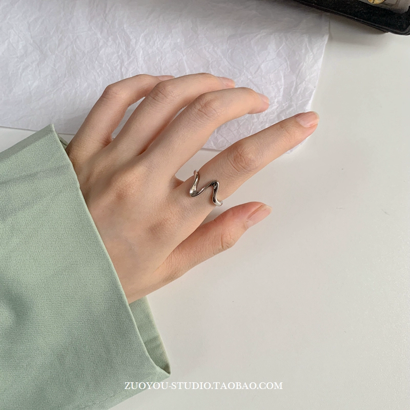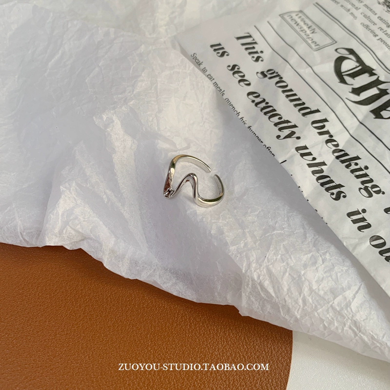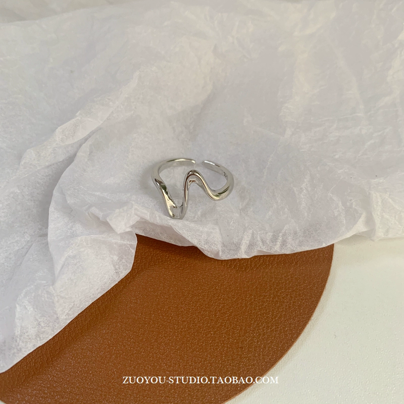 Niche retro high-end wave pattern ring for women INS trend simple fashion versatile cold style open index finger ring