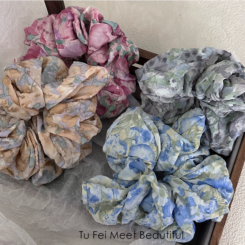 | nameOriginal | Niche retro oil painting gradient color halo-dyed large intestine hair tie |