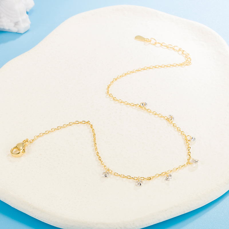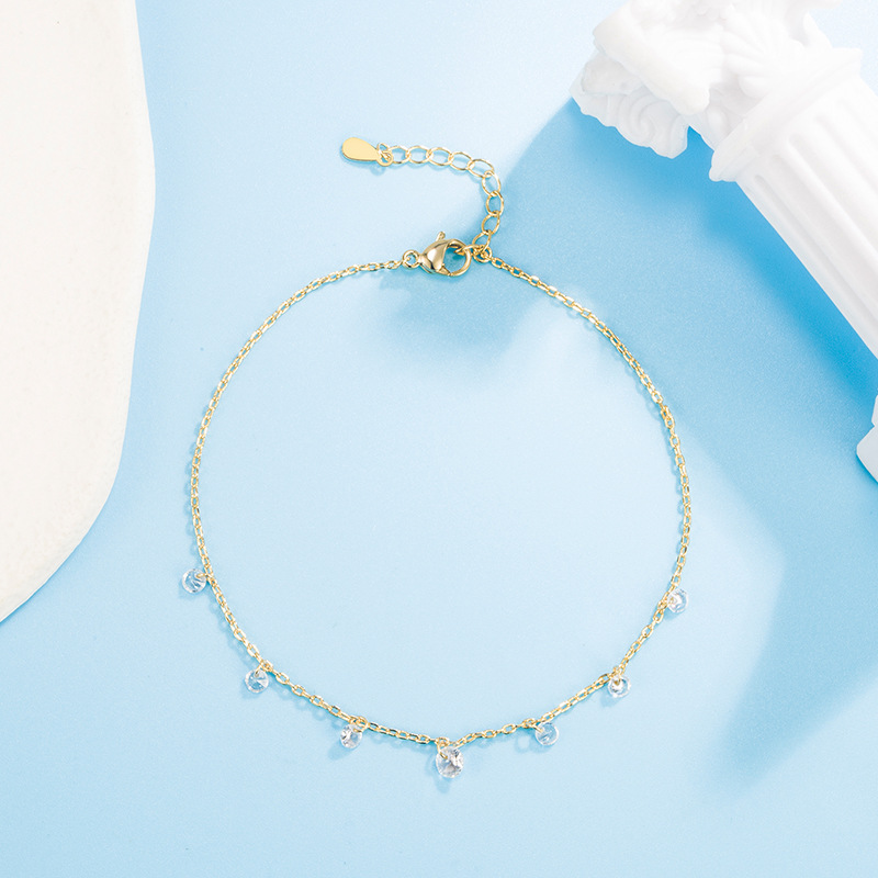 Niche Simple Tassel Crystal Diamond Plated 18K Gold Anklet Women's Internet Celebrity Korean Style Super Fairy Style Cool and Fresh