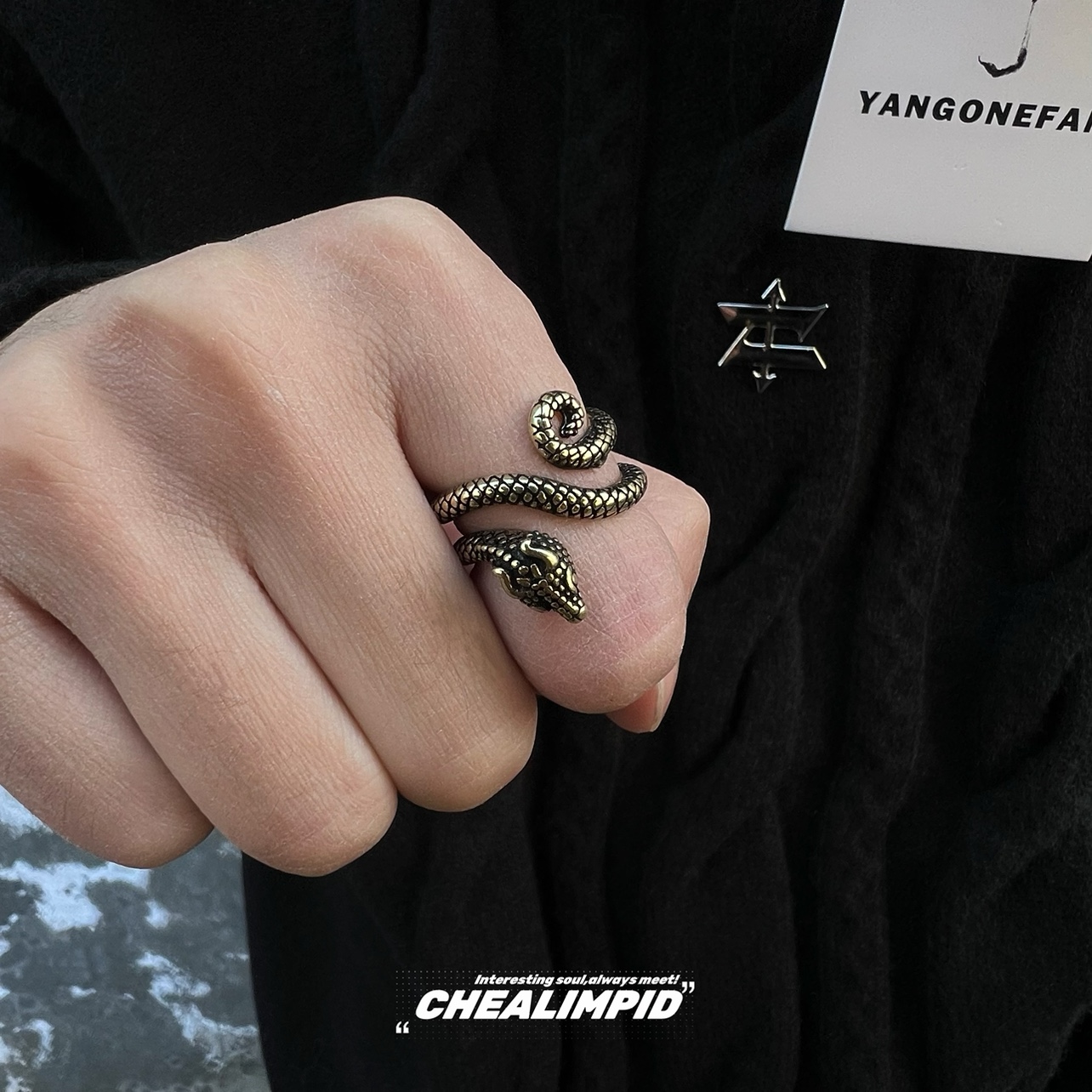 | nameOriginal | Niche snake entwined bronze gold exaggerated open ring |