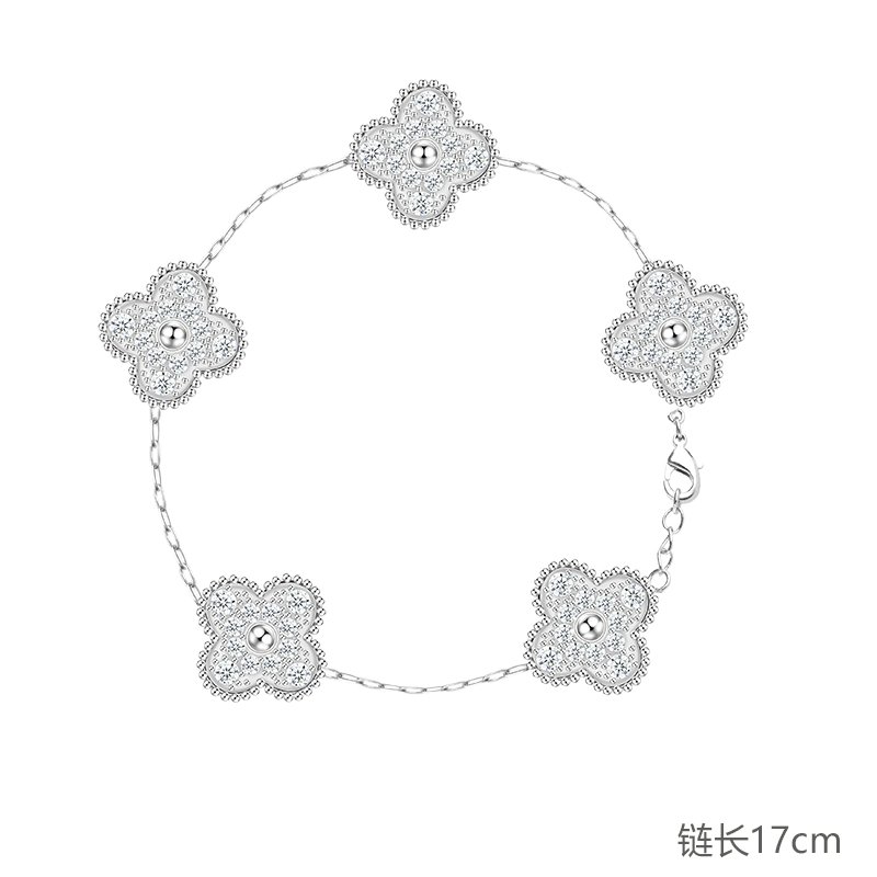 Niche super glitter full drill female earrings titanium steel four -leaf grass