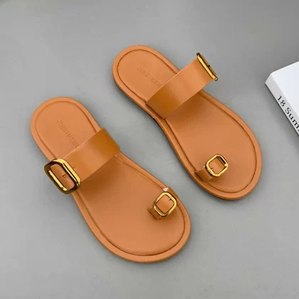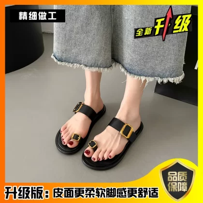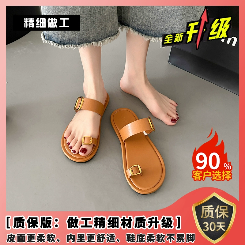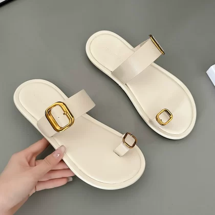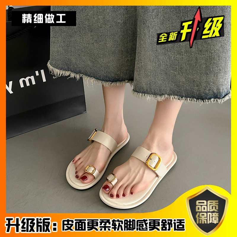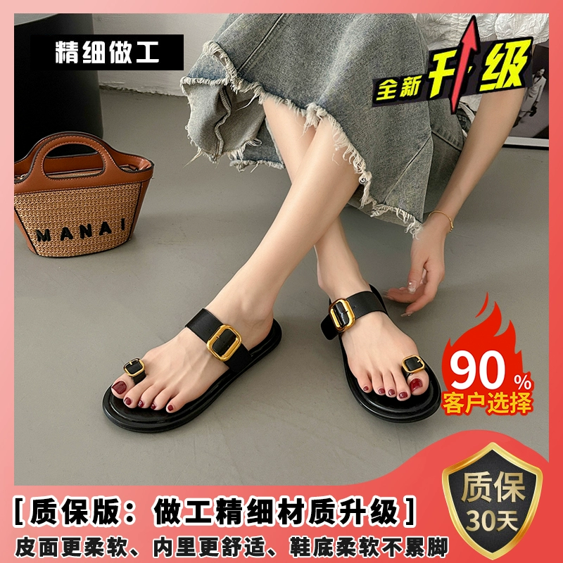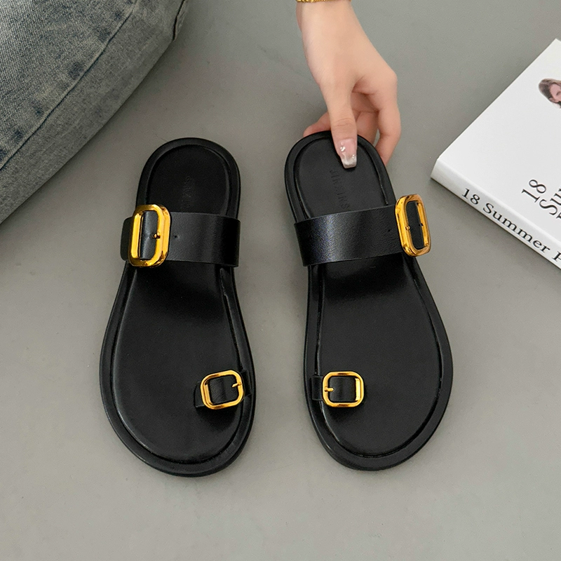 | nameOriginal | Niche thong-toe high-end belt buckle flat slippers |