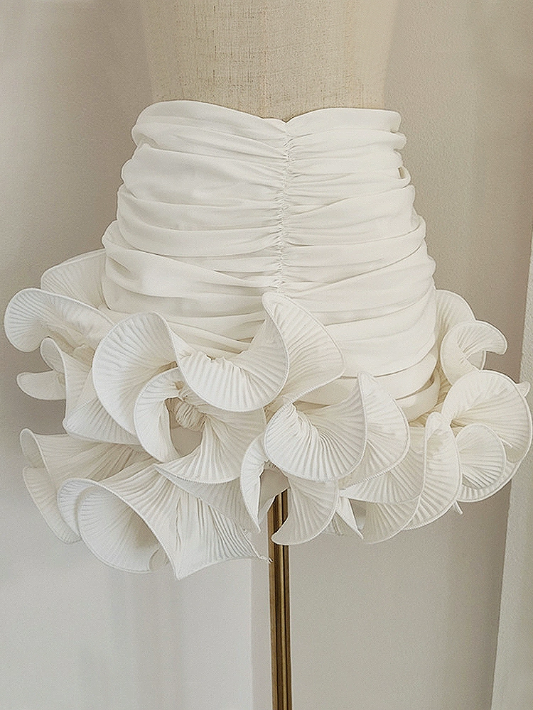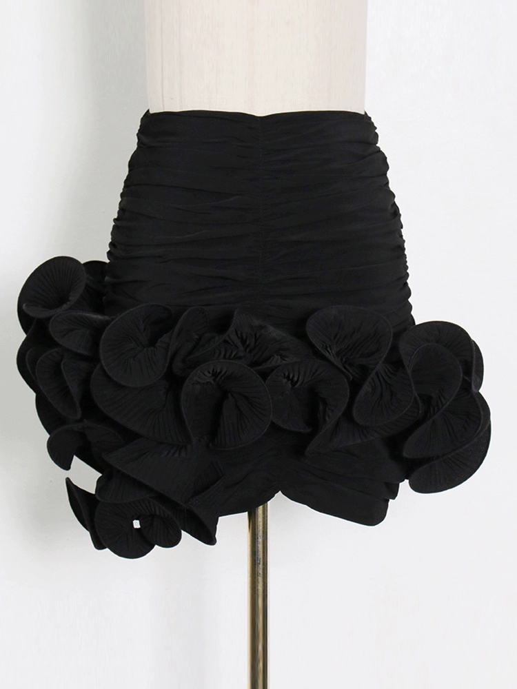 | nameOriginal | Niche three-dimensional asymmetrical high-waisted pleated short skirt with flowers |