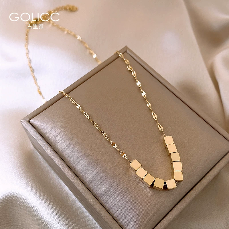 | nameOriginal | Niche titanium steel women's light luxury gold brick pendant necklace |
