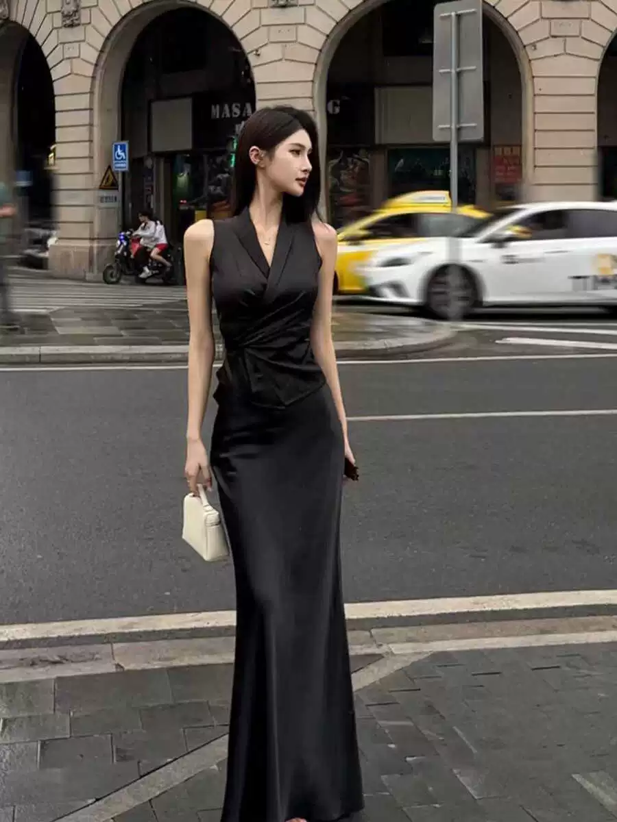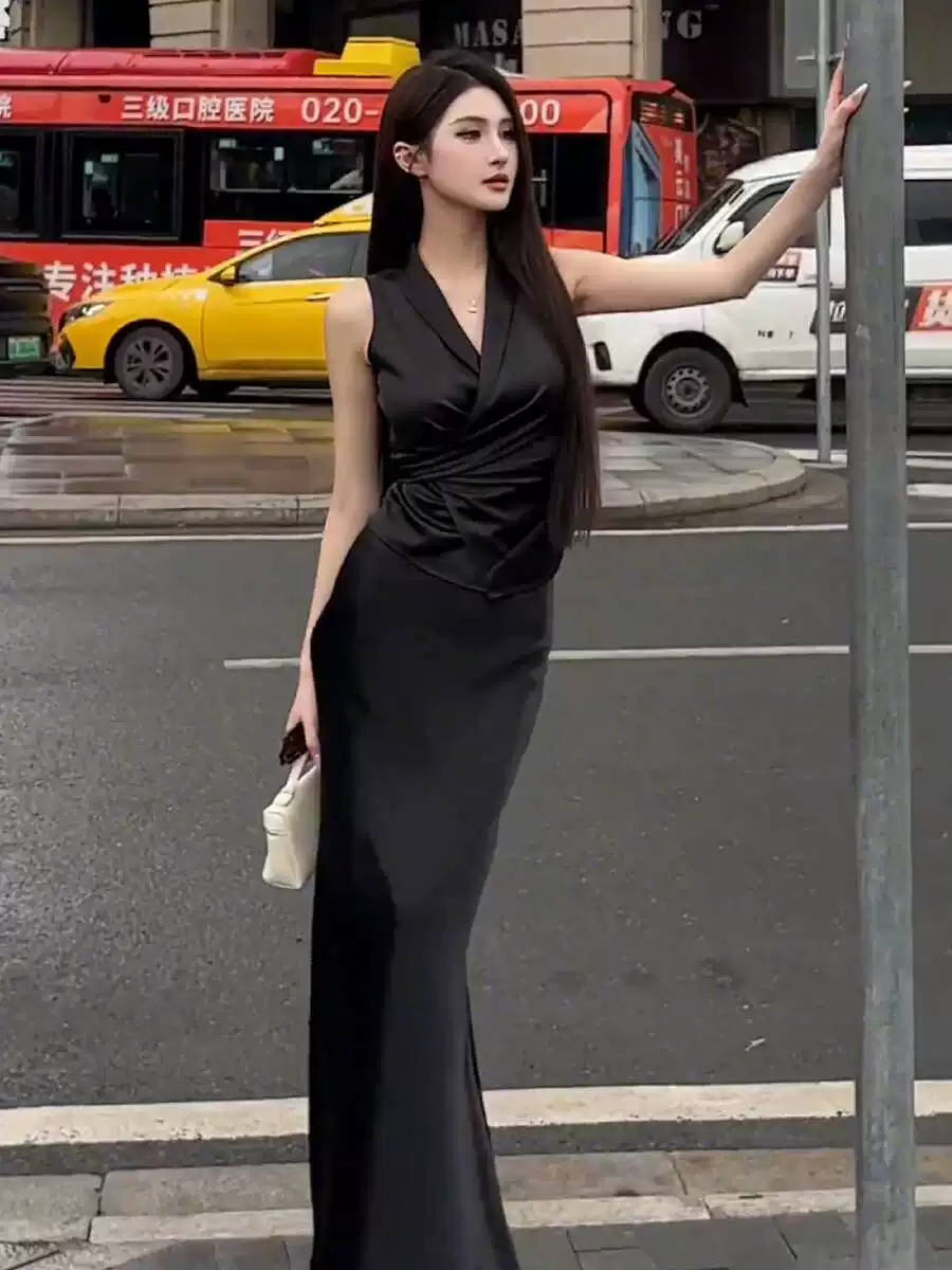 | nameOriginal | Niche v-neck sexy sleeveless fishtail skirt suit satin |