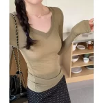 Niche V-neck thin long-sleeved spring and summer slimming top T-shirt