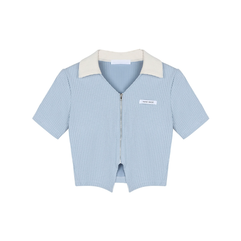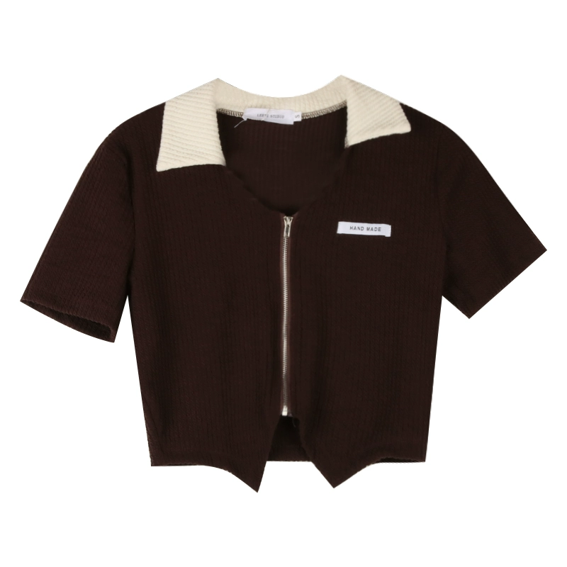 | nameOriginal | Niche women's summer slim fit midriff-baring short-sleeved zipper top |