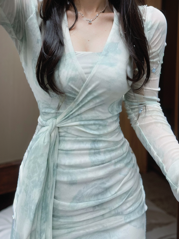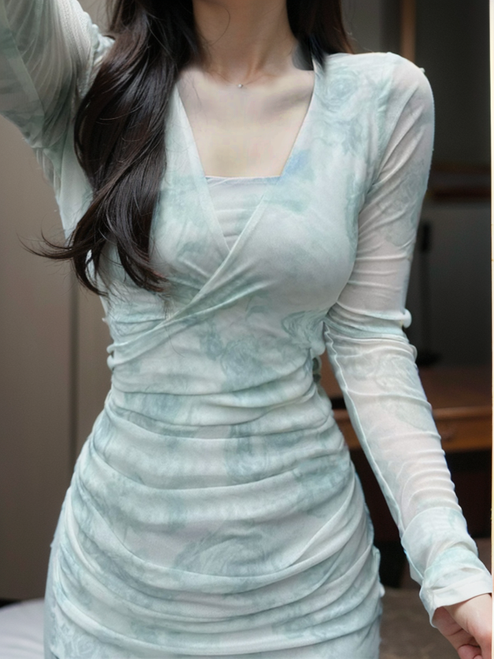 | nameOriginal | Niche women's waist slimming mesh floral dress |