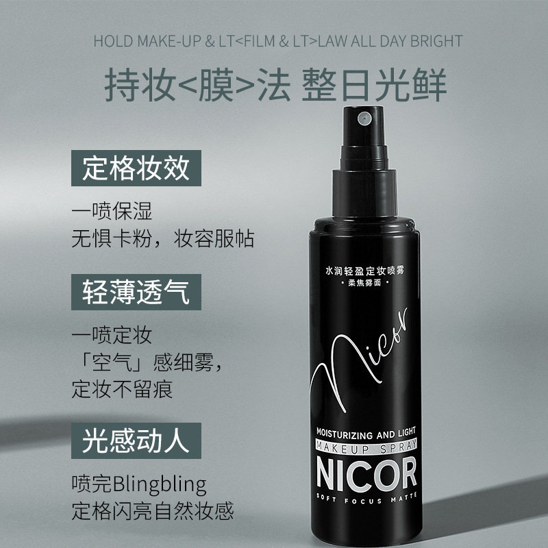 | nameOriginal | Nicor Nuokeya Hydration Lightweight Makeup Spray 100ml Oil Control Waterproof and Lasting Sweat-proof Makeup Spray for Hair |
